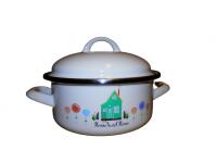 Bonyhádi Alice "Sweet Home"lábas fedővel, 16 cmA Bonyhádi Alice "Sweet Home" lábas fedővel, 16 cm. A Bonyhádi zománcozott edények a termékre vonatkozó, teljes körű információkat tartalmazó, zománcba beégetett fenékdekorációval ellátottak. A műszaki adatokat, használhatóságot jól felismerhető piktogramok jelölik. A zománcos lábas egyszerűen és könnyen tisztítható