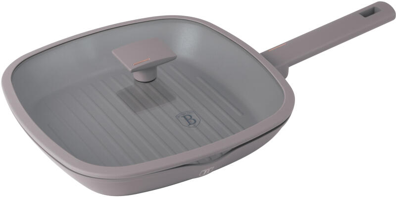 A Taupe Collection Grill serpenyő fedővel (28 cm) egy igazi különlegesség a modern konyhák számára. A kovácsolt alumíniumból készült serpenyő Ø28*4,1 cm méretű, 2,1 liter űrtartalommal rendelkezik, így ideális méretű a grill ételek elkészítéséhez. Főbb tulajdonságok és előnyök Anyag Kovácsolt alumíniumból készült, amely hosszú élettartamot és egyenletes hőe