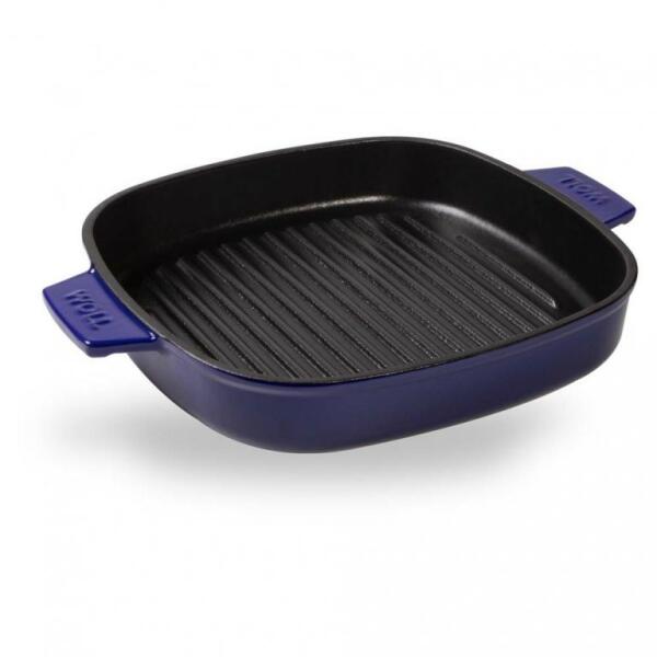 A 28x28 cm-es Iron grillserpenyő öntöttvasból készült, amely tökéletesen vezeti és tartja a hőt, így csökkenti az energiafogyasztást a sütés során. Egyedi, öntöttvas, réselt fedele van, amely kisebb, mint a serpenyő, a belsejében grillcsíkok vannak, és amikor a serpenyőt használja, csak ráfekszik közvetlenül a húsra. A vas serpenyő alkalmas arra, hogy a sütőből kö