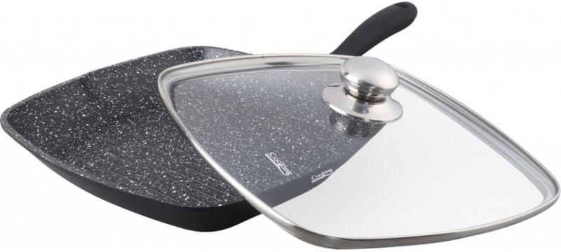 Cooking by Heinner Dark Line Grill serpenyő, alumínium, indukció, 28 x 4.5 cm Öntött alumínium, vastagság: 2 mm - 5 mm. Maner bachelita. Belső tér: tapadásmentes márvány. Külső: fekete. Indukciós bázis. Belső tér: tapadásmentes márvány. Külső, magas hőmérsékletnek ellenálló fekete festék. Indukcióhoz megfelelő alap. Fogantyú: bakelit. A termékek öntött alumínium
