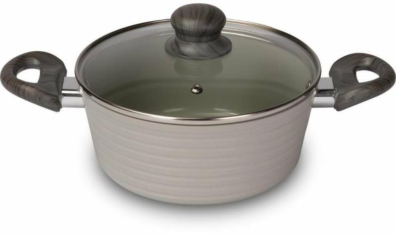 Cooking by Heinner fazék fedővel, Calabria, alumínium, 22X9,5cm, 3L Anyaga: öntött alumínium. Hőálló üvegburkolat rozsdamentes gombbal;Belső: szürke PFLUON kerámia bevonat márványos megjelenéssel;Külső: magas hőmérsékletnek ellenálló kerámia bevonat. ALUMÍNIUM SZEKRÉNY + BAKELIT NYÚL PUHA ÉRINTŐ FEDŐVEL;BURKOLAT: ÜVEG + ROZSDAMENTES ACÉL. Jellemzők:ALUMÍNIUM PAN +
