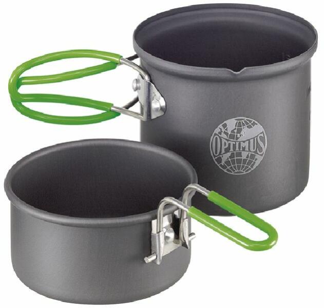 Kemény eloxált alumíniumból készült, innovatív tapadásmentes felülettel rendelkező főzőedénykészlet, amely egy 0,6 literes edényt, egy fedőként szolgáló serpenyőt és egy hálós fedelet tartalmaz. A készletben kényelmesen tárolható egy gázpatron, OPTIMUS Crux / Crux Lite égő és összecsukható