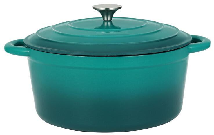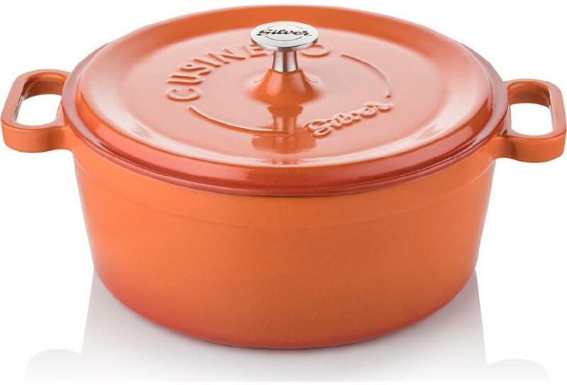 Anyaga: zománco zott öntöttvas Doboz mérete: 33,5*31*15,5 cm Mérete : 28,5 cm átmérő; 35,5 cm teljes szélesség fülekkel; 13,5 cm magas; ~19 cm magas fedővel Űrtartalom: ~6 liter Bruttó súlya : 8,18 kg Nettó súlya: 7,54 kg Használható: szabad tűzön, gáz- illetve elektromos tűzhelyen - sütőben, kemencében. Mikrosütőben nem használható! Használat során az edény felfor