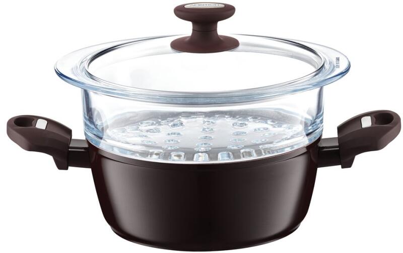 A Master Stone 24 cm párosó edénye egy egyedi megjelenésű, természetes hatású edény. Textúrája gránitra emlékeztet. Az edény elegáns színei emellett kiemelik a kiváló minőséget. Kovácsolt alumíniumból készült, ellenáll a deformációnak. Belül az eredeti svájci ILAG GRANITEC tapadásmentes bevonattal van borítva. Ez egy többrétegű bevonat kiváló tapadásmentes tul