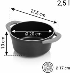 Masszív lábas első osztályú külső és belső tapadásmentes bevonattal és indukciós aljjal, minden típusú tűzhelyen és sütőben is használható. Levehető, hőálló szilikon fülek a biztonságos kezelés és könnyű tisztítás érdekében. Mosogatógépbe alkalmas. 5 év garancia.