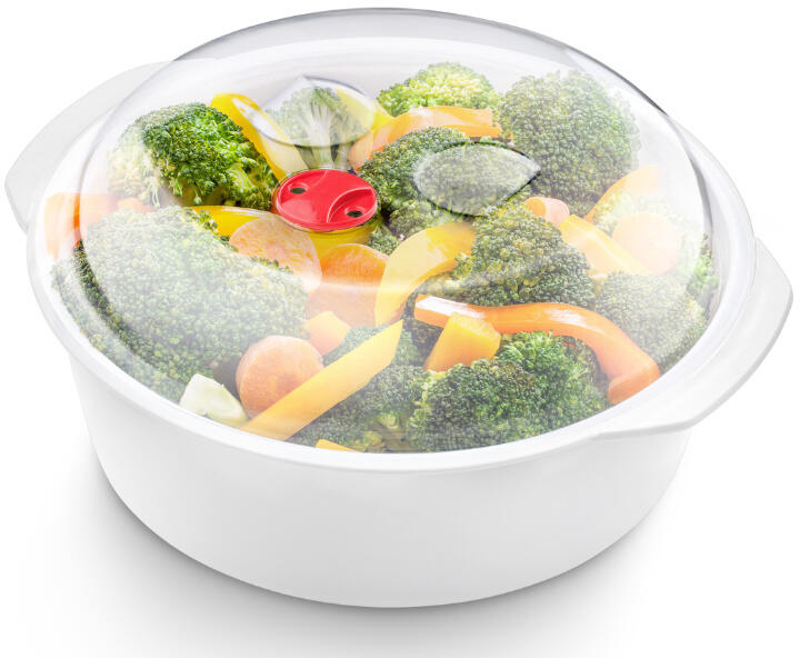 Lamart Wave párolódény Maximális űrtartalom: 1,2 liter Átmérő: 22 cm Magasság: 10,0 cm Anyag: műanyag Készlet tartalma: 1x edény / 1x fedő / 1x párolórács Multifunkciós kialakítás melegítésre és párolásra is alkalmas mikrohullámú sütőben Az edény hűtőben és fagyasztóban is használható Rövid párolási idő a gyors hőátadásnak köszönhetően Erős műanyag te