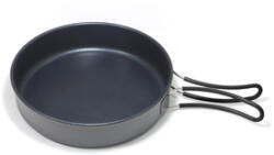 Origin Outdoors, kemény eloxált alumíniumból, tapadásmentes bevonattal. Az anyagnak köszönhetően tartós, de mégis könnyű, így nem növeli a felszerelésedet sok felesleges kilóval. Masszív fogantyúval rendelkezik, amely stabil fogást biztosít. A serpenyő egy praktikus hálós tasakba van