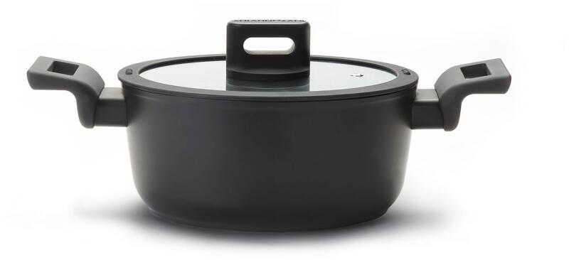 Kovácsolt alumínium lábas fedővel. Tökéletes pároláshoz, főzéshez. A fedél fekete szilikon szegéllyel van ellátva, így kiválóan illeszkedik a lábashoz. A kovácsolt alumíniumnak köszönhetően optimális a hőelosztás és az energiafogyasztás. 100% újrahasznosított alumíniumból készült. Indukciós, minden főzőfelülettel kompatibilis. Tapadásmentes, titánnal erősít