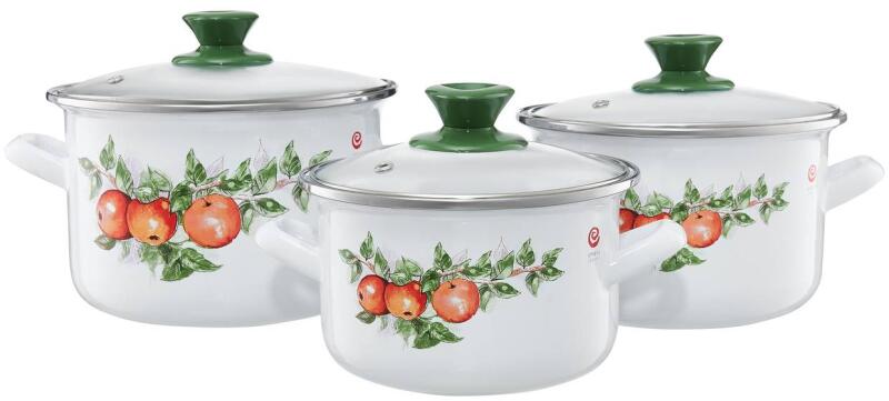 Olkusz Emalia zománcozott edénykészlet fém peremmel és üveg fedővel. A zománcozott edényeket funkcionalitásuk jellemzi - mosogatógépben moshatók és minden típusú tűzhelyen használhatók. Az edények szénacélból készültek, és zománcbevonattal vannak bevonva, amely egészségessé, higiénikussá és biztonságossá teszi őket. A bevonat természetes anyagokból készül,
