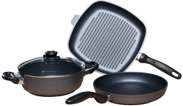 SWISS DIAMOND® 4 darabos gyémánt felületű edénykészlet, indukciós, egész életre szóló garanciával Az új sztenderd a tapadásmentes felületben. A Swiss Diamond® XD a legújabb, legfejlettebb valódi gyémánttal megerősített tapadásmentes felület, melyet svájci laboratóriumokban fejlesztettek ki, és szintén svájcban gyártanak. Az eredmény pedig egy extra erős edény, ame