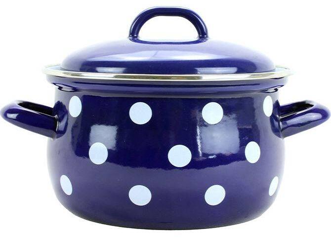 Hagyományos zománcozott lábas fedővelAcél lábas 2 db fogantyúval, acél fedővel Mindennapi használatra szánt egyszerű kivitelű, könnyen tisztítható főzőedény. Nagy előnye a bevonatos vagy rozsdamentes edényekhez képest kedvező ára, nagyobb strapabíró képessége, kisebb gondozás igénye. Gáz, elektromos, kerámia, indukciós főzőlapokon is használható. Mosogatógépb