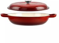 Perfect Home zománcozott öntöttvas szeletsütő lábas fedővel 27cm, piros (10133) A Perfect Home zománcozott öntöttvas szeletsütő lábas rendkívül sokoldalú, szabad tűzön, gáz-, illetve elektromos tűzhelyen és sütőben is használható. Tisztítás: A zománcozott külső és belső bevonatnak köszönhetően a szeletsütő könnyen tisztítható. Tisztítása meleg vízzel és