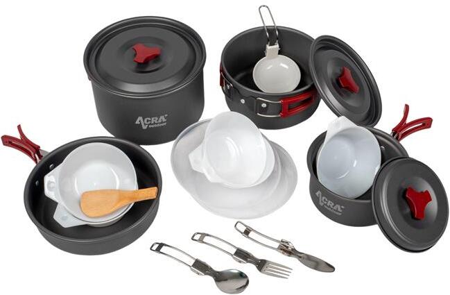 Sátor alatt vagy kempingben szeretne időt tölteni? Könnyítse meg az ételkészítést, és szerezze be az ultrakönnyű és kompakt Acra C22 -es edénykészletet . A praktikus összecsukható fogantyúknak köszönhetően helyet takaríthat meg hátizsákjában. Használja a készletet ebéd vagy vacsora elkészítéséhez akár 4 fő részére. Túrázásra, kempingezésre, piknikezésre alk