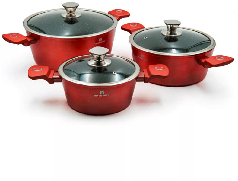 Nanotechnológiai eljárással készült, tapadásgátló bevonattal ellátott 6 elemes edényszett, gránitpor (márványutánzó) keverékével, rendkívül sűrű, kompakt és sima réteget hozva létre a felületen. Anyaga: préselt alumínium Bevonat: kerámia-márvány bevonat, tapadásmentes bevonat, PFOA mentesMinden típusú tűzhelyhez és főzőlaphoz alkalmas edények. Az indukciós f