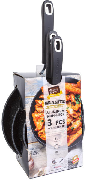 Konyhák alapfelszereltsége a serpenyő, amely számos étel elkészítését teszi lehetővé. Legyen szó húsokról, zöldségekről, burgonyafélékről, a szettben biztosan megtalálja a szükséges méretet. Az edények belső felülete tapadásmentes réteggel van borítva, amely megkönnyíti az étel elkészítését. A készlet három különböző méretű serpenyőt tartalmaz, melyek