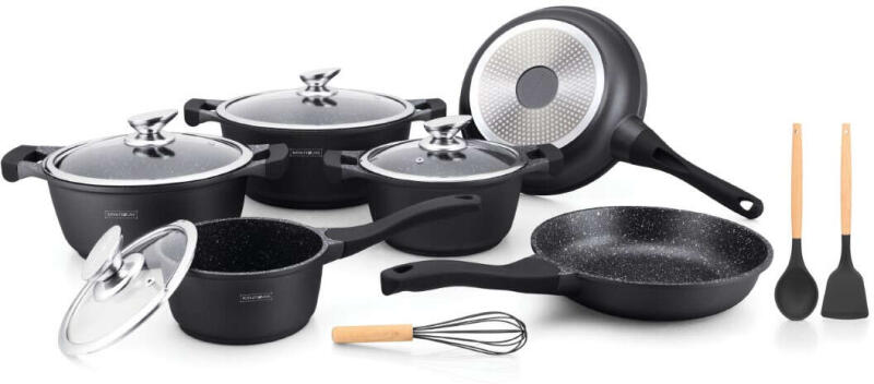 Fejlessze kulináris készségeit és étkezési élményét a Royalty Line RL-BS1010M 10 részes kerámia bevonatú edénykészlettel, amely örömteli és könnyed feladattá teszi a főzést. Az alumíniumötvözetből készült és márványszerű bevonattal ellátott darabok tartósságot és kivételes hőeloszlást biztosítanak, egyenletes főzést és optimális eredményt biztosítva. A