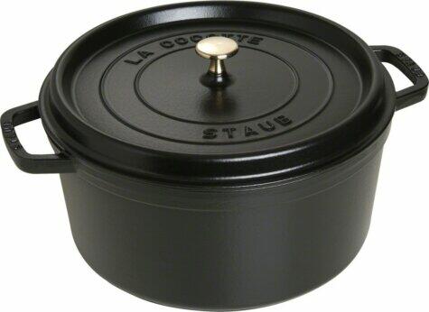 Az edény belseje matt fekete zománcA nehéz öntöttvas fedő és a fedő belső részén található kis kiemelkedések lehetővé teszik, hogy a pára az edény belsejében maradjon és intenzívebbé tegye az ételek ízétA hő az edény teljes felületén oszlik el, ezáltal az étel nem ég odaA csorbulással szemben nagyon ellenálló