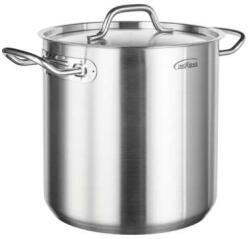 Inoxibar Professional line rozsdamentes acél fazék fedővel 40 x 40 cm, 50 L, 21% inox. Mit jelent a 21% INOX? Ez az anyag összetétele: acél, + 21% króm. A Professional line kollekció 21% rozsdamentes acélból készült, kifejezetten nagykonyhai vagy éttermi felhasználásra, ahol a tartósság és magas minőség az igény. Szép és elegáns megjelenése akár látványkonyhák mindenna
