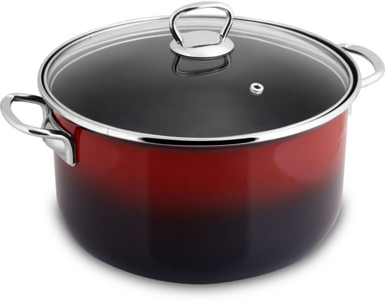 Rendkívül ellenálló alumíniumból készült termék. Ütésnek és leégésnek ellenálló zománcozott belső felülettel ellátott lábasok és serpenyők vastag aljjal és nagyon elegáns rozsdamentes acél vagy zománc fogantyúval. A zománcozott anyag rendkívül jó hőellenállással bír, megakadályozza a leégést és egészséges főzést tesz lehetővé. Nagyon jó minőségben v
