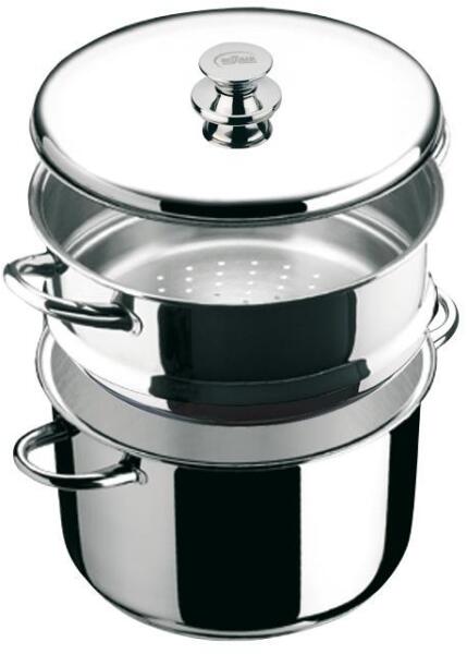 Inoxibar rozsdamentes pároló fazék szett 20 x 23 cm, 18/10 rozsdamentes acélból Ecco Acero Line. Kiváló minősége mellett, rendkívül impozáns megjelenésű. A fogantyú nem melegszik át. Minden főzőfelületen használható, beleértve az indukciós, kerámia, gáz, elektromos felületeket. Mosogatógépben tisztítható. Mit jelent az INOX 18/10? Ez az anyag összetétele: acél, 18%