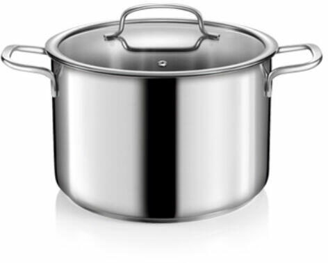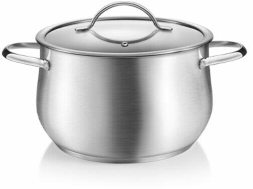 Luxus konyhai edények rozsdamentes acélból és üvegből készült fedővel, masszív rozsdamentes acél fogantyúkkal, extra erős szendvics aljjal és mérőskálával. Első osztályú rozsdamentes acélból készült 18/10, minden típusú tűzhelyre alkalmas - gáz, elektromos, üvegkerámia és indukciós. A rozsdamentes acélból készült fogantyúk vízállóak, az edény mosogatógép