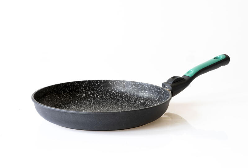 Magas tisztasági indexű alumínium anyagHáromszoros tapadásmentes, kerámia részecskékkel megerősített bevonattal az intenzív használat és a magas hőteljesítmény érdekébenA serpenyőnek praktikus és hőálló fogantyúja vanMosogatógépben moshatóOlaszországban készült
