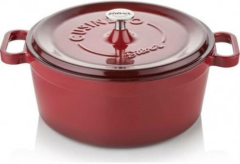 Litinový hrnec Silver. Červený barva, průměr 28 cm.