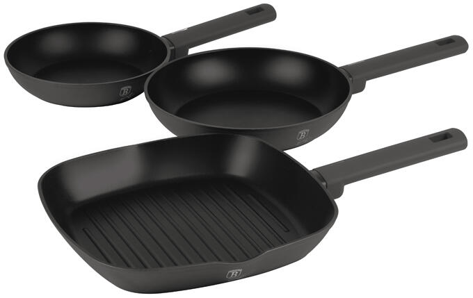 A BerlingerHaus Antracit Collection 3 részes serpenyő szett egy elegáns és praktikus választás a modern konyhák számára. A kovácsolt alumíniumból készült serpenyők matt antracit színben pompáznak, melyeket tapadásmentes titánPro bevonattal láttak el, így garantálva a hosszú élettartamot és a könnyű tisztíthatóságot. Főbb tulajdonságok és előnyök Szett tartalma A