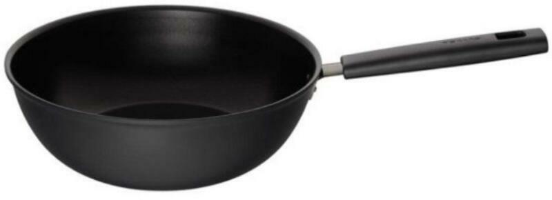 Fiskars alumínium wok nagy igénybevételű ételkészítéshez. Tapadásmentes tulajdonságok, Hardtec Superior felület, bakelit biztonsági fogantyú, vastagabb energiatakarékos alj, modern fekete design.