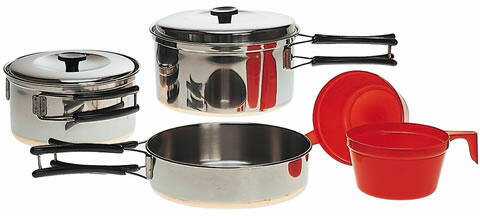 A Mil-tec nemesacél ebédkészlet 2 fő részére ideális a természetbe, kempingezésre. Könnyű, praktikus, könnyen tárolható, tartalmaz serpenyőt, edényeket, bögréket. Német gyártó, kompakt csomagolás, bárhol felhasználható.