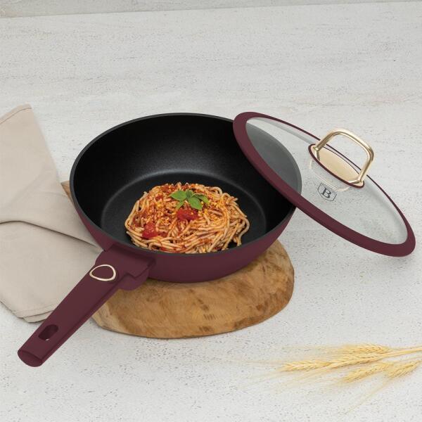 Berlinger Haus tapadásmentes mély serpenyő fedővel, 24 cm – BH-8032 A Berlinger Haus Leonardo kollekciójának 24 cm-es mély serpenyője a stílus, az innovatív technológia és a könnyű használhatóság tökéletes ötvözete. Kiváló minőségű, kovácsolt alumíniumból készült, 3x tartósságú titánPro tapadásmentes bevonattal, ami nemcsak a főzés élményét teszi kényelm