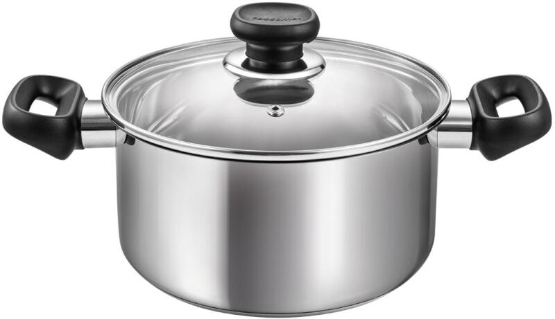 Minőségi rozsdamentes acélból készült modern konyhai edény extra vastag szendvicsaljjal, ergonomikus fogantyúkkal és mérőskálával. Gőzkieresztővel ellátott rozsdamentes acél üvegfedő. Minden típusú – gáz, elektromos, üvegkerámia és indukciós – tűzhelyen használható, mosogatógépben tisztítható. 5 év garancia.