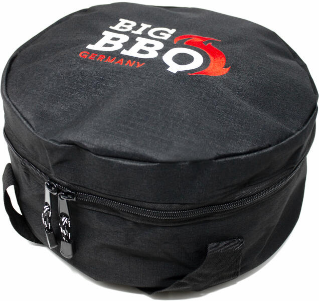 Grillezésre fel! A Klarstein Chianina szállítótáskával nagyon könnyen magával viheti vagy tárolhatja az öntöttvas edényt, amelyet használhat szabadban a tűz felett. A szintetikus textilből készült táska szakadásálló, védi a barbecue edényt és a párnázott fogantyúknak köszönhetően lehetővé teszi az egyszerű és kényelmes szállítást. Két beépített hálós zseb