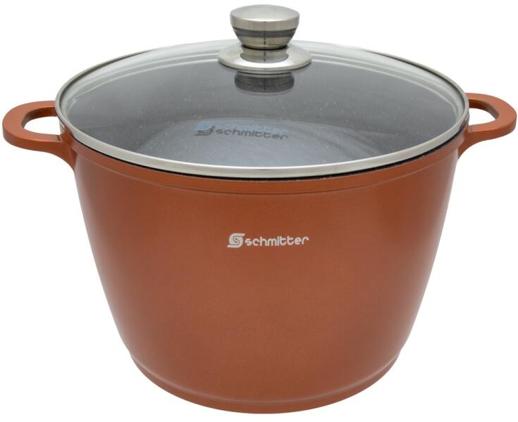 Schmitter Fazék, kerámia, 24 cm, 7 L Jellemzők: - öntött alumínium;- alsó vastagság 4,0 mm;- 3 rétegből álló belső tér;- sütőben is használható (fedél nélkül);- "hőálló" festék.