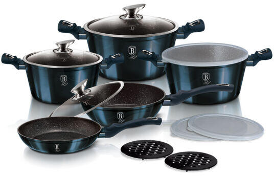 Berlinger Haus Metallic Line Aquamarine Edition 10+3 részes edénykészlet márvány bevonattal