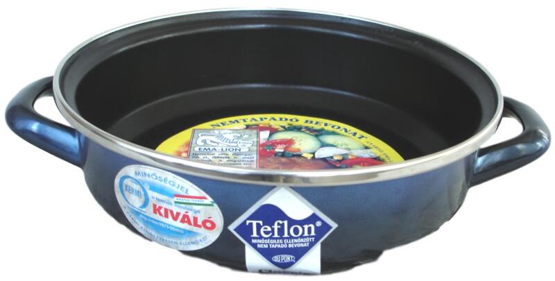 Zománcozott füles sütőlábas Kívül: kék metál árnyalt Belül: Teflon® Classic bevonat Fedő nélkül 24 cm átmérő 2,25 literes Használható főzőfelület: gáz, elektromos, kerámia, halogén, indukciós Mosogatógépben mosható .