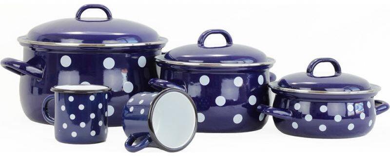 A PUNTIK kék zománcos edénysorozat kivételes és játékos dizájnnal büszkélkedhet, vidám színe pedig vidám pillanatokat, játékosságot és a vidéki nyári vakációk iránti nosztalgiát idézi .