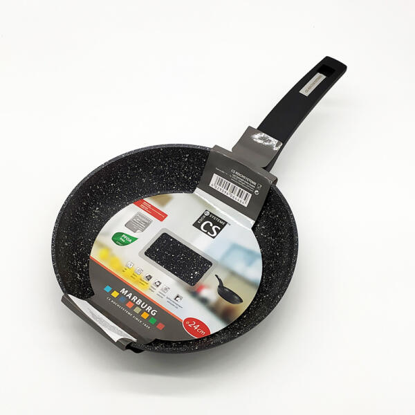 CS Kochsysteme Marburg márvány bevonatú tapadásmentes indukciós serpenyő 24 cm - 64464 Aluminium ötvözet edénytest Tapadásmentes márvány bevonat Hőálló külső bevonat matt fekete színben Használat közben nem átforrósodó műanyag fogantyú PFOA mentes Bármilyen főzőlapon használható: elektromos, üvegkerámia, halogén, gáz, indukciós Mosogatógépben mosható átmérő