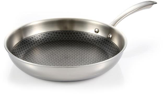 Luxus serpenyő első osztályú rozsdamentes szendvics acélból, forradalmi tapadásmentes bevonattal, acélrácsokkal ellátva az intenzív, egyenletes pirításhoz, odaégés nélkül. Ellenáll a fém konyhai eszközöknek, minden típusú tűzhelyre alkalmas, beleértve az indukciósat is, valamint sütőben történő pirításra egyaránt használható. Könnyű tisztítás 5 év garancia.