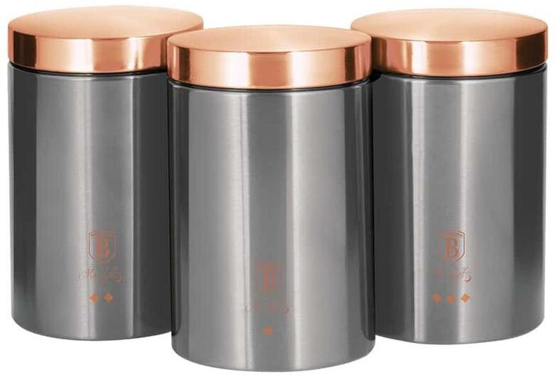 Leírás Anyaga: rozsdamentes acél A szett tartalma: Cukor tartó: 11*17,8 cm Tea tartó: 11*17,8 cm Kávé tartó: 11*17,8 cm Színe: szürke- rose goldTermék részletekA Moonlight Collection egy elegáns és modern tárolókészlet, amely stílusosan illeszkedik a modern konyhákba. A rozsdamentes acélból készült szett tartalma három részből áll, egy cukor tartóból, egy tea tartóbó