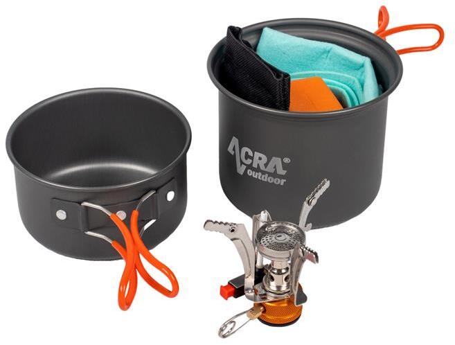 Sátor alatt vagy kempingben szeretne időt tölteni? Könnyítse meg az ételkészítést, és szerezze be az ultrakönnyű és kompakt Acra C23-as edénykészletet . A praktikus összecsukható fogantyúknak köszönhetően helyet takaríthat meg hátizsákjában. Használja a készletet ebéd vagy vacsora elkészítéséhez akár 2 fő részére. Túrázásra, kempingezésre, piknikezésre alka