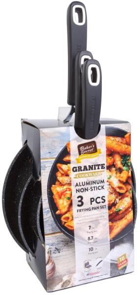 Konyhák alapfelszereltsége a serpenyő, amely számos étel elkészítését teszi lehetővé. Legyen szó húsokról, zöldségekről, burgonyafélékről, a szettben biztosan megtalálja a szükséges méretet. Az edények belső felülete tapadásmentes réteggel van borítva, amely megkönnyíti az étel elkészítését. A készlet három különböző méretű serpenyőt tartalmaz, melyek