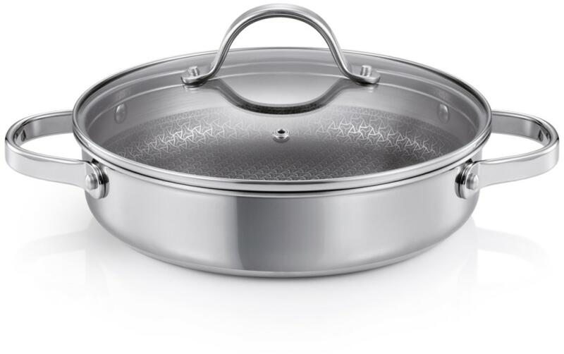 Fényűző edények forradalmian új tapadásmentes bevonattal. Mi teszi különlegessé a SteelCRAFT edényeket? Egyesítik a klasszikus rozsdamentes acél edények előnyeit a tapadásmentes bevonat előnyeivel. Az alumínium maggal ellátott szendvicsacél konstrukciónak köszönhetően a hő gyorsan és egyenletesen oszlik el az edények minden részén. Az egyedülálló tapadásmentes felü