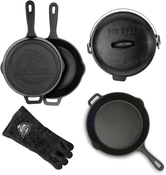 A Pit Boss 6 darabos öntöttvas induló készlettel az összes kedvenc ételét magával viheti a konyhából a grillbe, vagy bárhová, a szabadban. Ez a készlet tartalmaz egy: 25,4 cm hosszú nyeles serpenyőt, 30 cm átmérőjű mély serpenyőt, a hozzá tartozó, 30 cm-es fedőt, 25 cm átmérőjű Dutch Oven kemping sütőt 25 cm átmérőjú fedővel, strapabíró bőr kesztyűt. A se