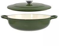Perfect Home zománcozott öntöttvas szeletsütő lábas fedővel 31,5cm, zöld (80057) Szabad tűzön, gáz- és elektromos tűzhelyen, sütőben és kemencében egyaránt használható. Mikrohullámú sütőben viszont nem használható! Az használat során az edény erősen felmelegszik, ezért sütőkesztyű használata ajánlott. Tisztítás: Zománcozott külső és belső bevonatának kö