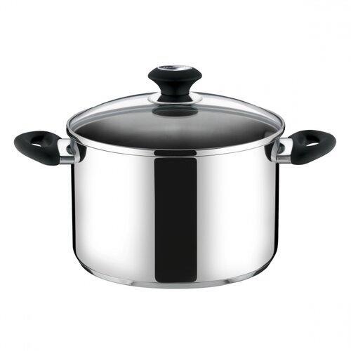 Tescoma PRESTO Fazék fedővel ø 24 cm, 7.0 l Első osztályú rozsdamentes acél ból készült, extra erős szendvics alj jal és ergonomikus fogantyúval. A rozsdamentes acélból és üvegből készült, gőzkieresztővel ellátott fedő lehetővé teszi a főzési folyamat tökéletes ellenőrzését. Minden típusú tűzhelyre alkalmas - gáz, elektromos, üvegkerámia és indukciós, mosog