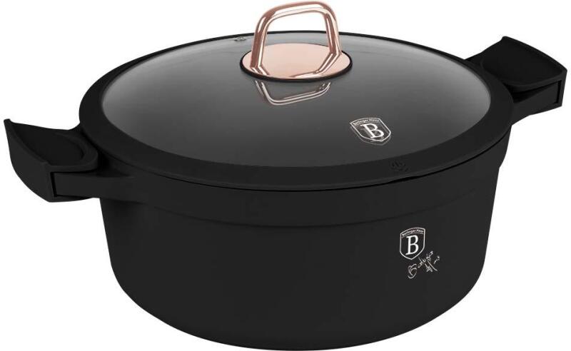 Berlinger Haus tapadásmentes lábas fedővel 28 cm, Black Rose - BH-7784 A Berlinger Haus tapadásmentes lábas fedővel (28 cm, Black Rose - BH-7784) ideális választás mindennapi főzéshez és sütéshez. A 6,6 literes lábas öntött alumíniumból készült, ami kiváló hőelosztást biztosít. A belső felületet 3x tartósságú tapadásmentes titánPro bevonat fedi, így a főzés kön