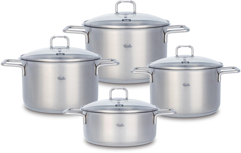 A FisslerHamburg sorozatú edénykészlet kiváló minőségű 18/10 rozsdamentes acélbólkészült. A főzőedények minden típusú tűzhelyrealkalmasak , beleértve az indukciós tűzhelyet is, és mosogatógépbenmoshatóak.