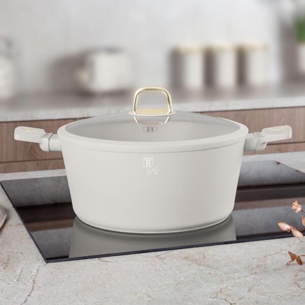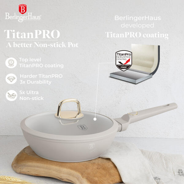 Berlinger Haus Lábas fedővel, 30 cm, Sahara Collection - BH-8073 Fedezze fel a Berlinger Haus tapadásmentes serpenyő új szintjét, amelynek 8 literes űrtartalma a nagyobb mennyiségek elkészítését is kényelmessé teszi. A kovácsolt alumíniumból készült edény 3x tartósabb titánPro bevonattal rendelkezik, így az ételek nem ragadnak le, a tisztítás pedig gyerekjáték. A turbó