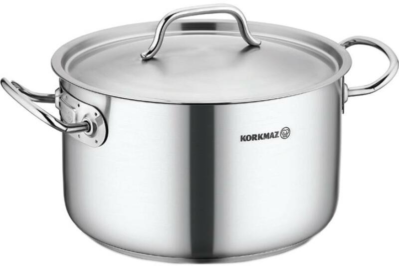 Rozsdamentes acél lábas Korkmaz. Méretek 20 x 12 cm, térfogat 3,6 l.
